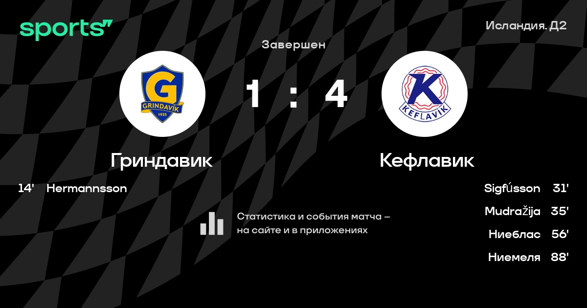 Результат прошлой игры в турнире «Первый дивизион»: Гриндавик – Ньярдвик 1:5. После 10 туров Гриндавик набирает 11 очков и занимает 8 место в турнире. Лучший бомбардир команды – Adam Arni Robertson: он забил 7 в 8 матчах. Гриндавик проигрывает в 3 последних матчах в рамках турнира «Первый дивизион». В 11 последних матчах в турнире «Первый дивизион» Гриндавик обязательно забивает. Гриндавик пропускает в 15 последних матчах в турнире «Первый дивизион». В последних 5 играх Гриндавик забивает 7 голов. В последних 5 играх Гриндавик пропускает 17 голов.