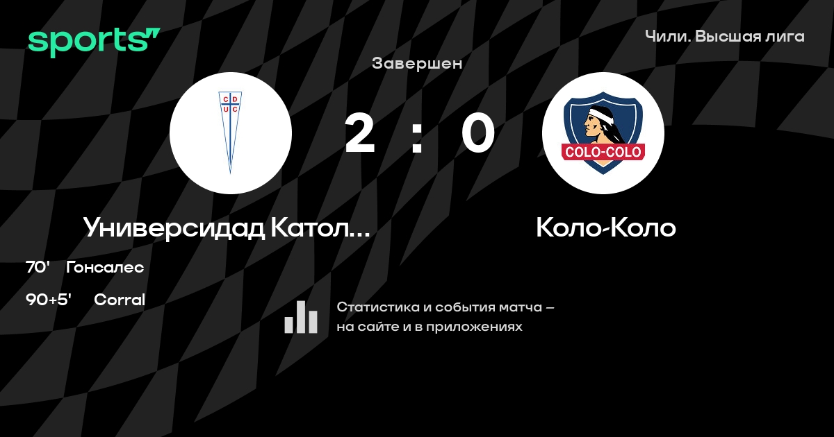 Универсидад Католика – Коло-Коло: Коло-Коло не пропускает в 2 из 8 последних матчей против этого соперника