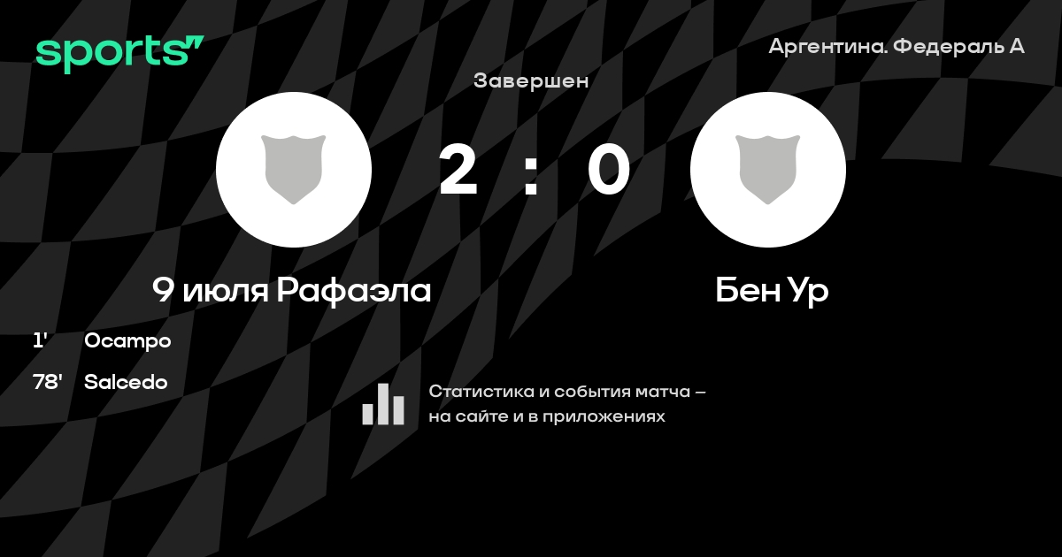 9 июля Рафаэла – Бен Ур: Бен Ур не проигрывает в 5 из 7 последних матчей против этого соперника