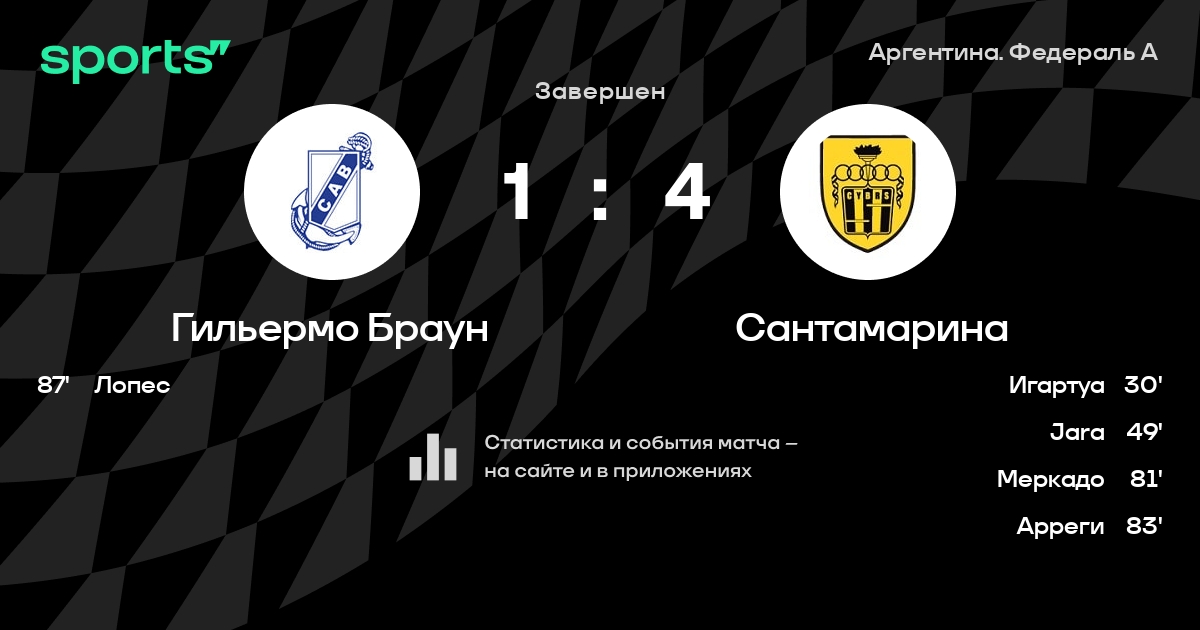 Гильермо Браун – Сантамарина: Сантамарина не проигрывает в 5 из 7 последних матчей против этого соперника в гостях