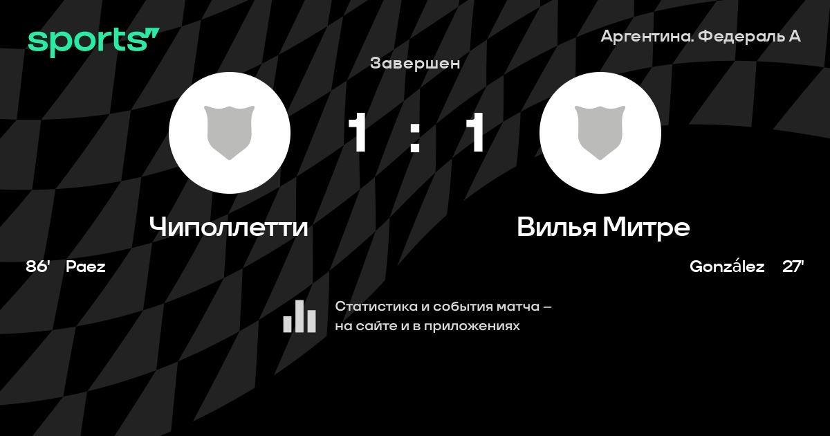 Чиполлетти – Вилья Митре: Вилья Митре не проигрывает в 7 из 9 последних матчей против этого соперника