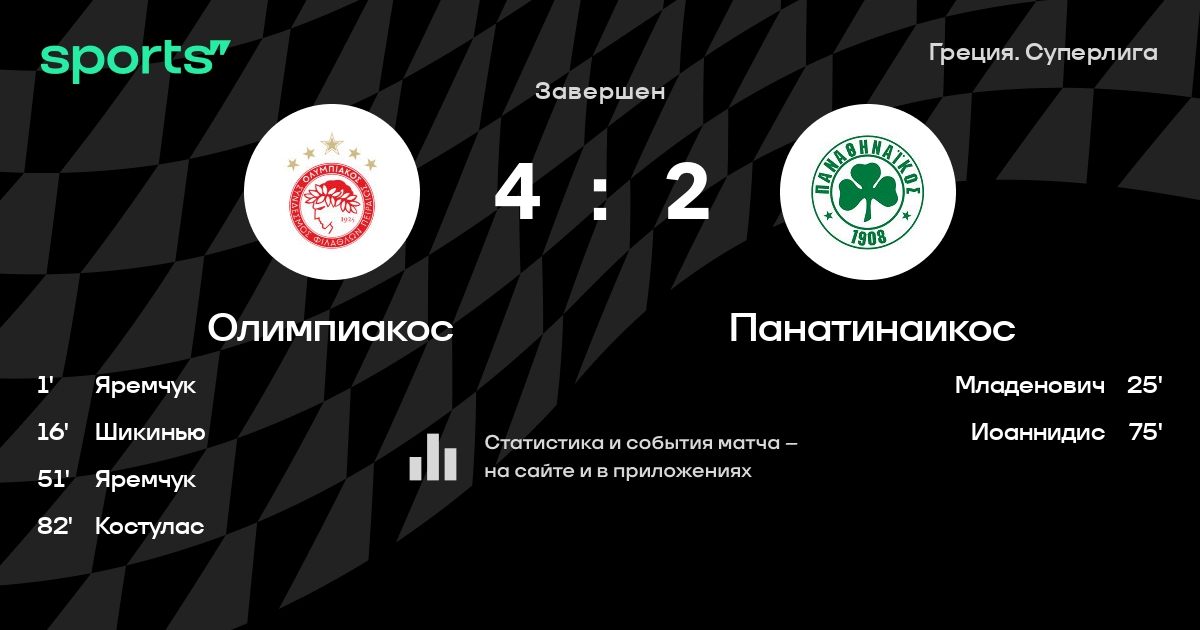 | 2 | Панатинаикос | 32 | 17 | 8 | 7 | 42 | 32 | +10 | 59 | ||
