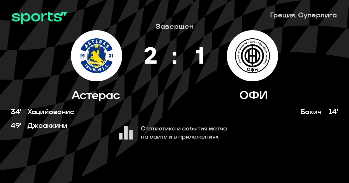 Астерас – ОФИ: Астерас забивает в 7 из 9 последних матчей против этого соперника