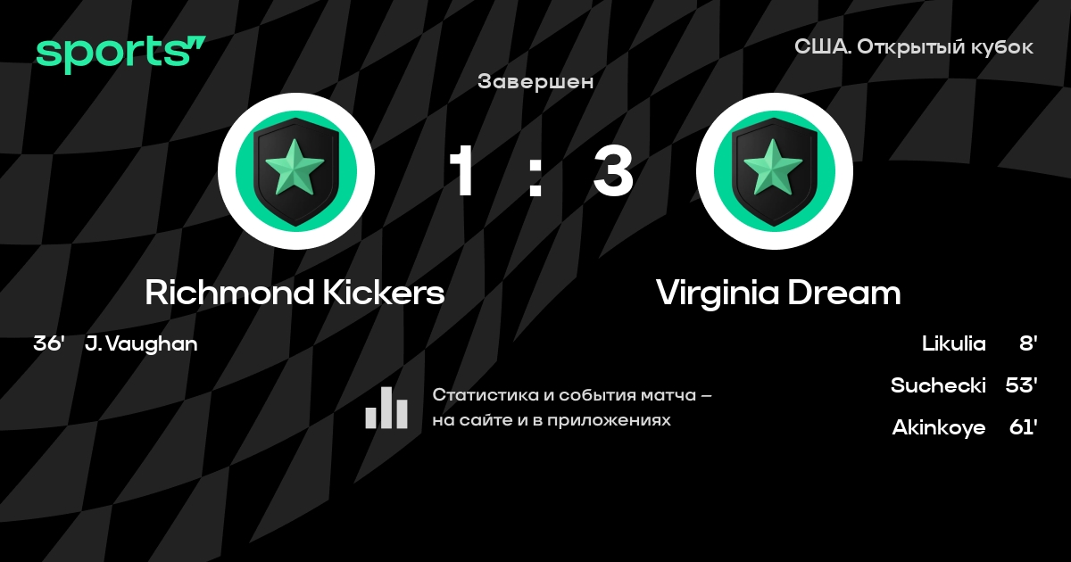 В последних 5 играх Richmond Kickers забивает 6 голов. В последних 5 играх Richmond Kickers пропускает 9 голов.