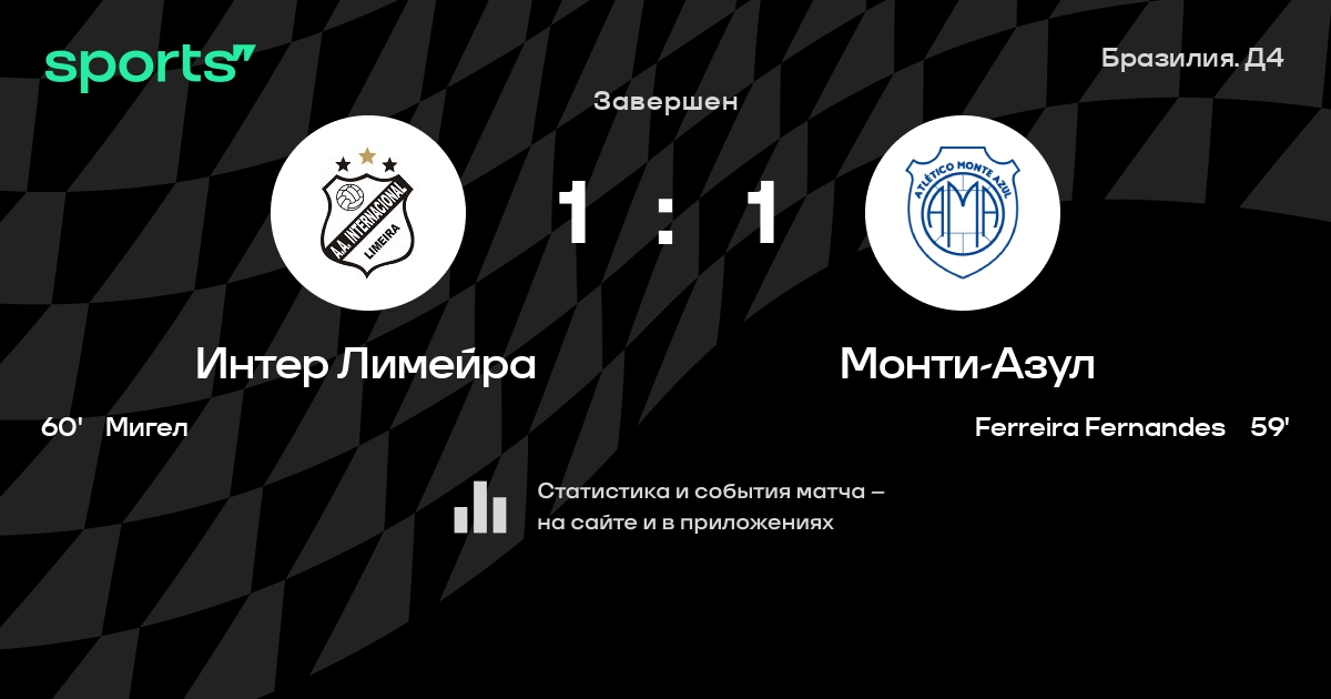 Интер Лимейра – Монти-Азул: Монти-Азул забивает в 4 последних матчах против этого соперника