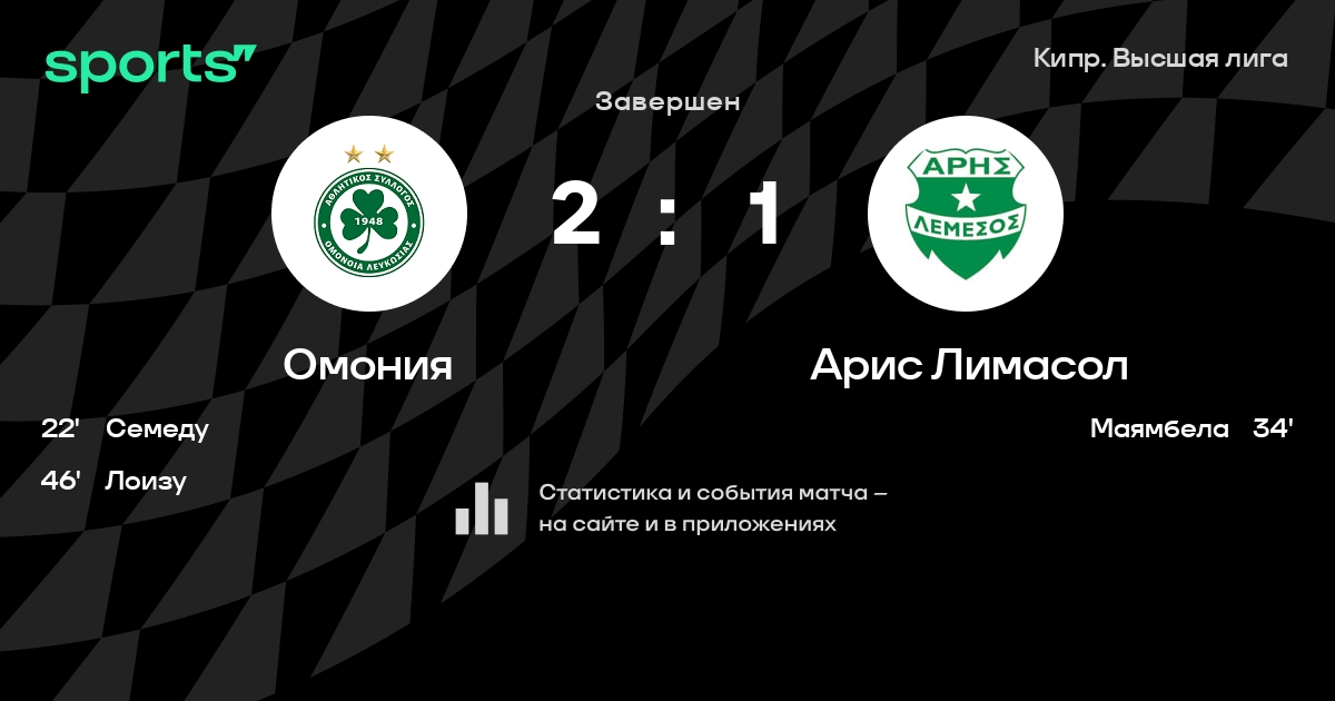 Омония – Арис Лимасол: Арис Лимасол не проигрывает в 5 из 7 последних матчей против этого соперника в гостях