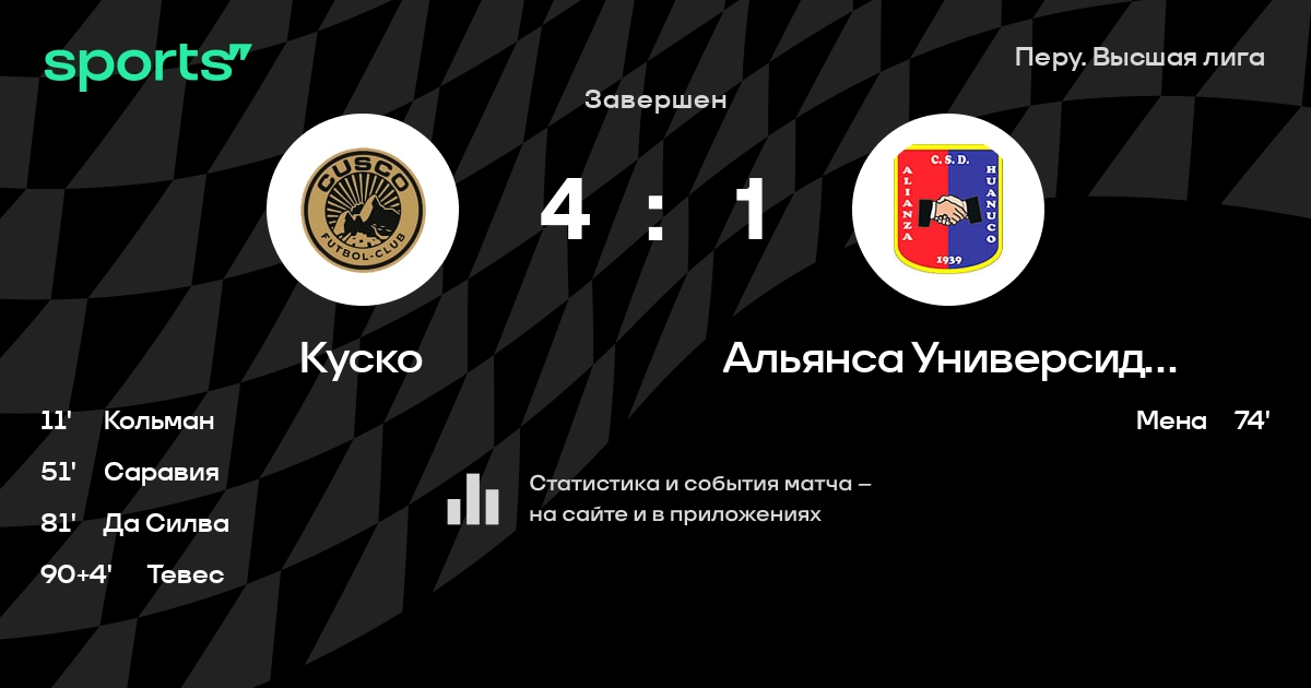 Результат прошлой игры в турнире «Примера»: Атлетико Грау – Куско 0:0. После 15 туров Куско набирает 25 очков и занимает 7 место в турнире. Лучший бомбардир команды – Факундо Кальехо: он забил 11 в 15 матчах. Куско не проигрывает в 6 последних матчах в рамках турнира «Примера». В последних 5 играх Куско забивает 8 голов. В последних 5 играх Куско пропускает 5 голов.