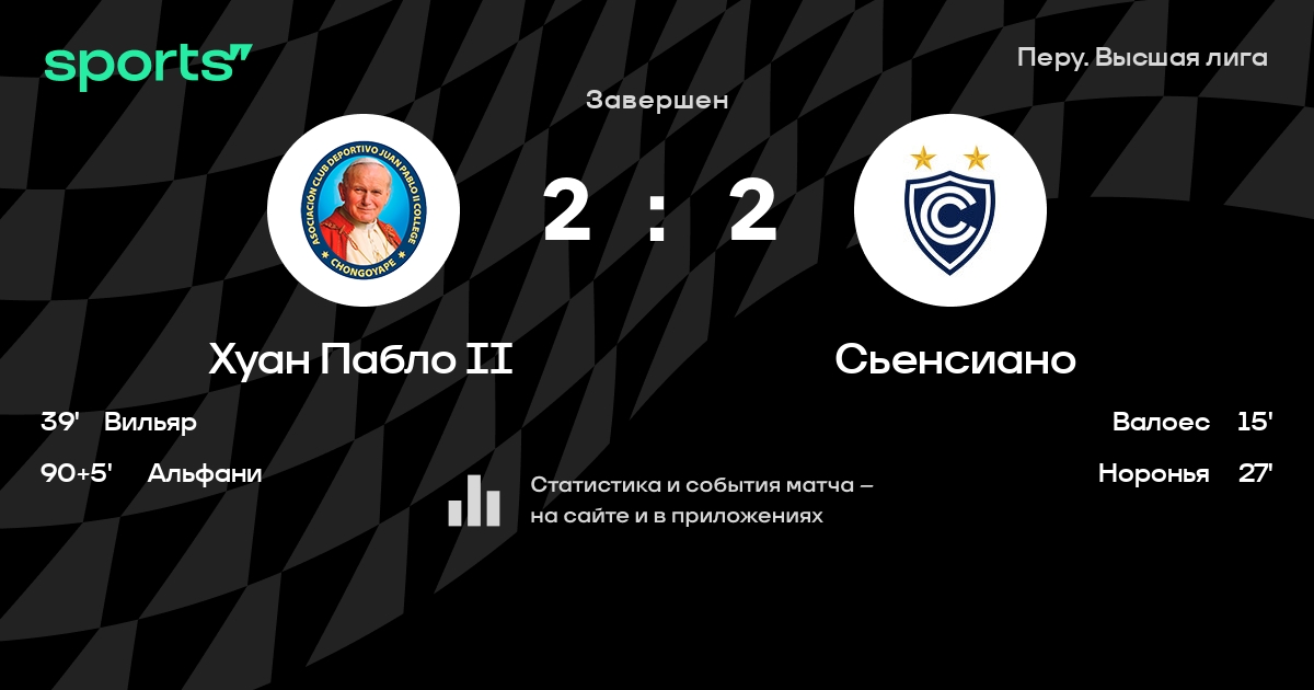 Хуан Пабло II – Сьенсиано: коэффициенты
