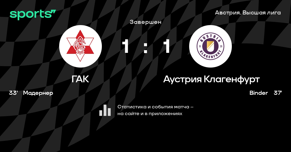 ГАК – Аустрия Клагенфурт: Аустрия Клагенфурт забивает в 13 из 15 последних матчей против этого соперника