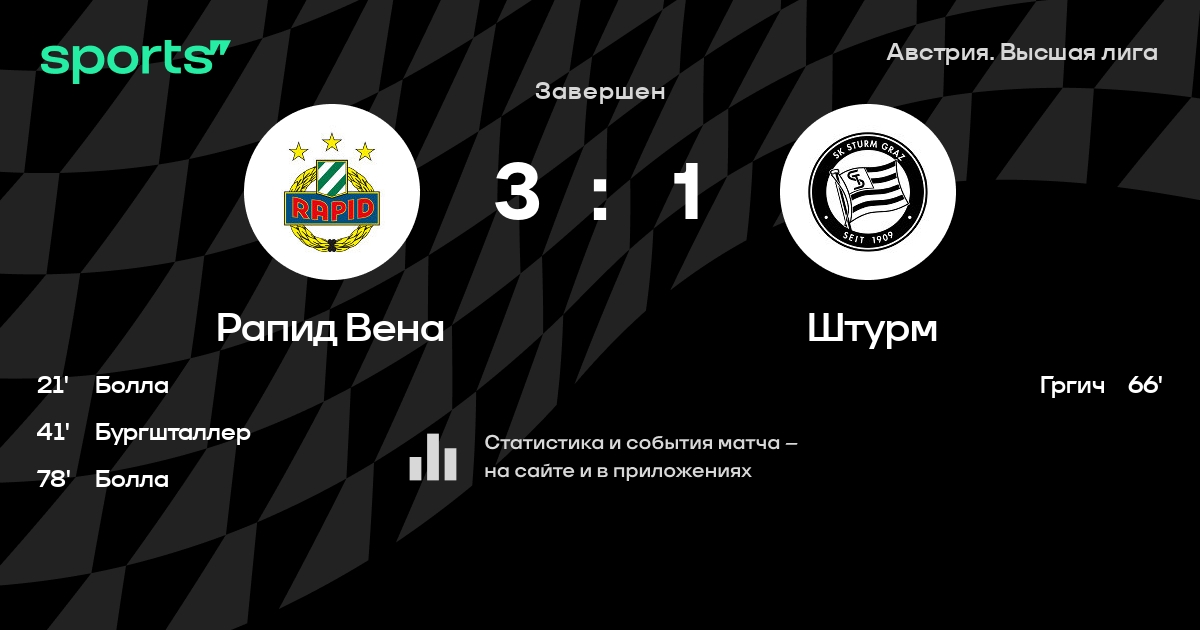 Рапид Вена – Штурм: Штурм не проигрывает в 7 из 9 последних матчей против этого соперника
