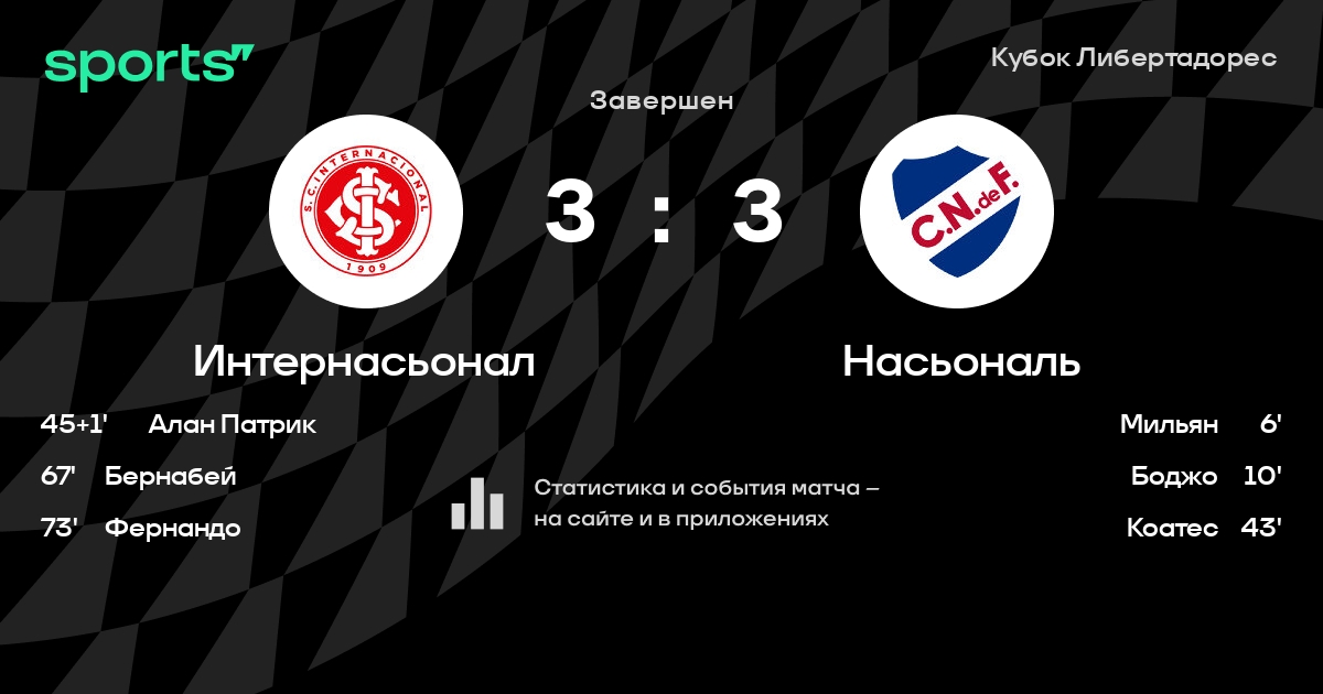 Интернасьонал – Насьональ: Интернасьонал забивает в 6 последних матчах против этого соперника
