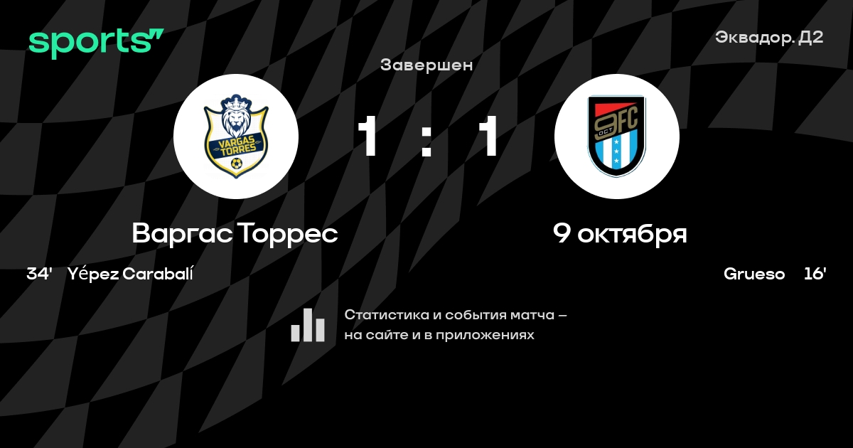 Варгас Торрес – 9 октября: 9 октября не пропускает в 3 последних матчах против этого соперника
