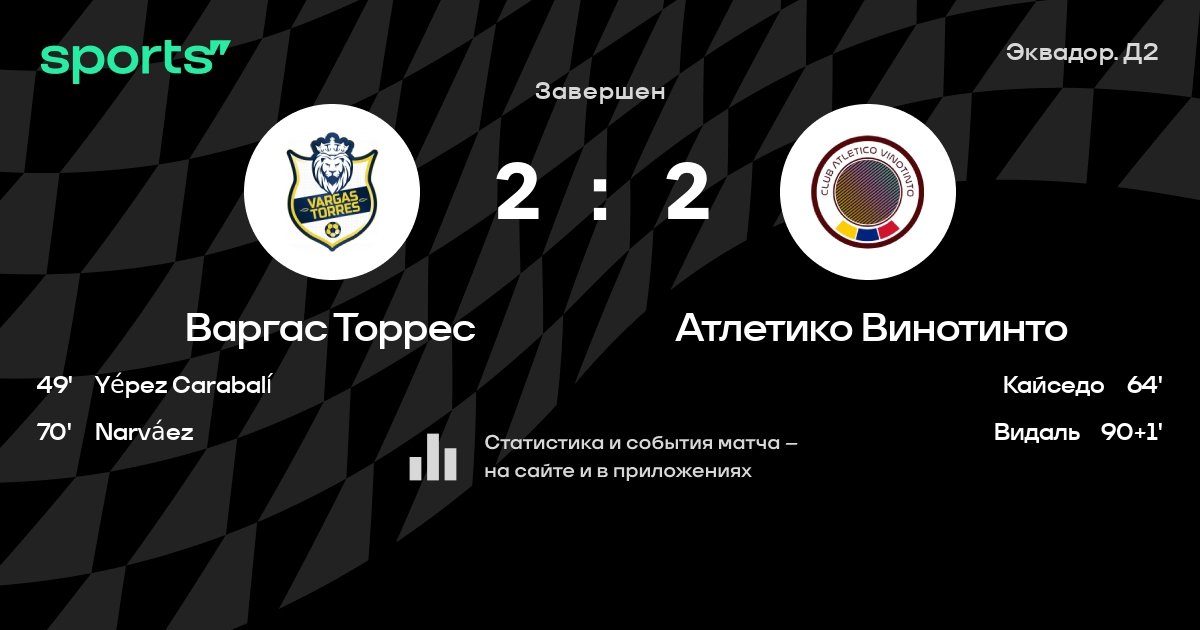 Варгас Торрес - Атлетико Винотинто: положение в турнире