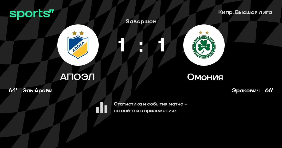АПОЭЛ – Омония: АПОЭЛ не проигрывает в 5 из 7 последних матчей против этого соперника дома в турнире «Лига 1»