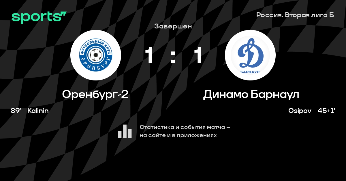 Оренбург-2 – Динамо Барнаул: Динамо Барнаул забивает в 6 последних матчах против этого соперника