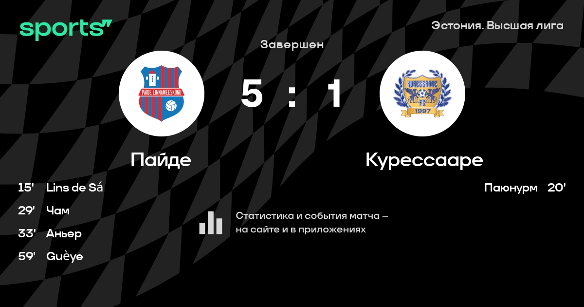 Меэритс - Баранов, dos Santos de Sa, Лиландер - Чам, Muhammed Suso, Хыйм, Миллер, Mouhamed Guèye - William Gabriel Lins de Sá, АньерЗапасные: Jarju, Салисте, Soo, Гилмор, Luts, Корр, Рейнкорт, Лутс, Badamosi