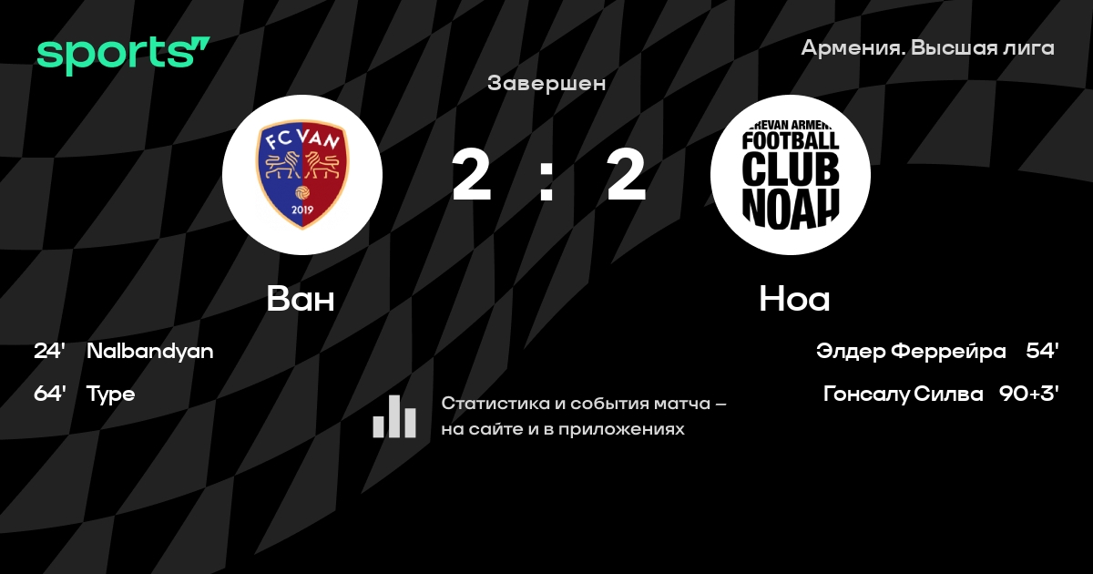 Ван – Ноа: Ноа забивает в 11 из 13 последних матчей против этого соперника