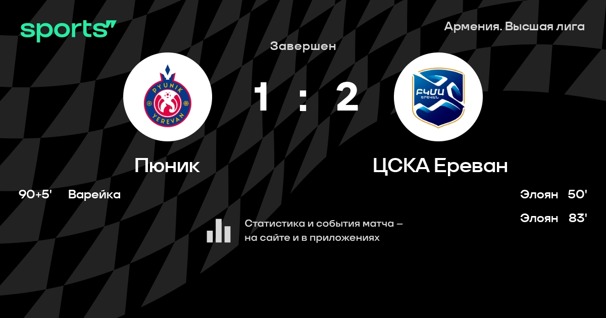 Пюник – ЦСКА Ереван: Пюник забивает в 16 последних матчах против этого соперника