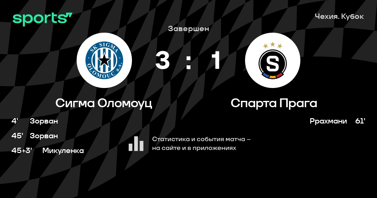 Сигма Оломоуц – Спарта Прага: Сигма Оломоуц забивает в 3 последних матчах против этого соперника
