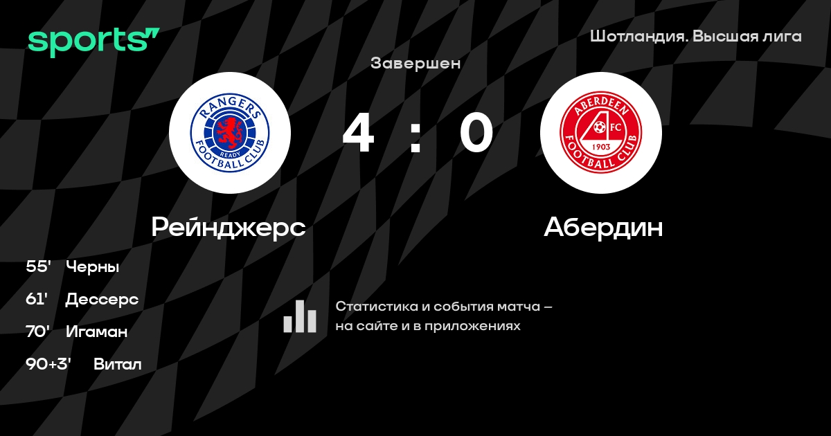 Рейнджерс – Абердин: Рейнджерс не проигрывает в 5 из 7 последних матчей против этого соперника