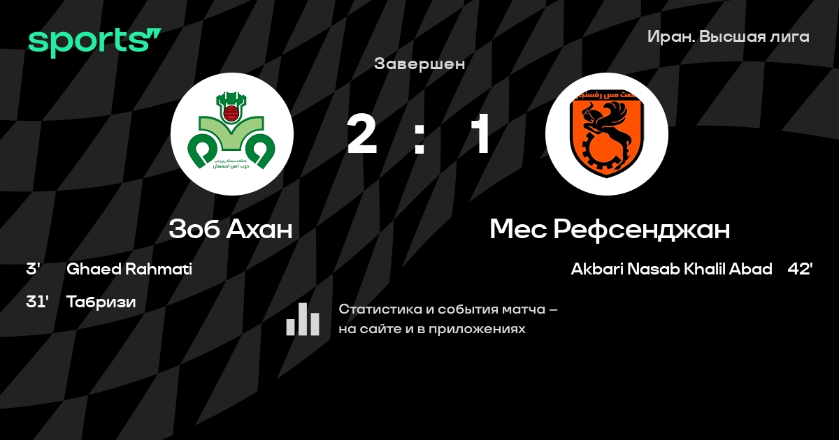 Зоб Ахан – Mes Rafsanjan: Зоб Ахан забивает в 3 последних матчах против этого соперника