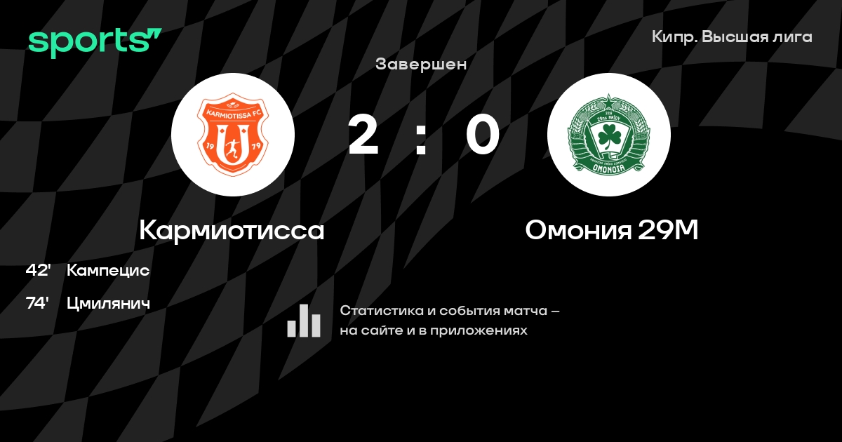 Кармиотисса – Омония 29М: Кармиотисса забивает в 3 последних матчах против этого соперника