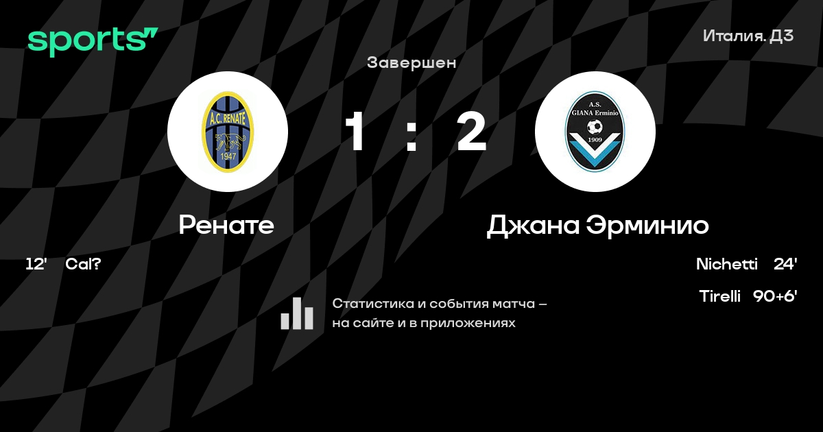 Ренате – Джана Эрминио: Ренате не проигрывает в 5 из 7 последних матчей против этого соперника дома