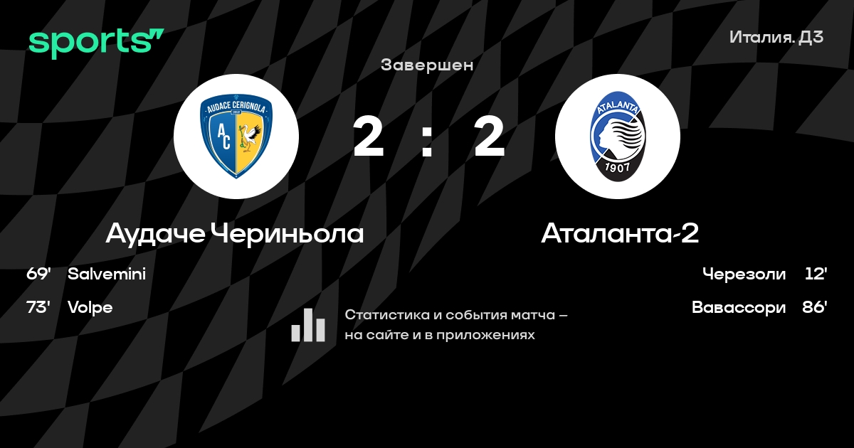 Трансляция Аудаче Чериньола - Аталанта-2