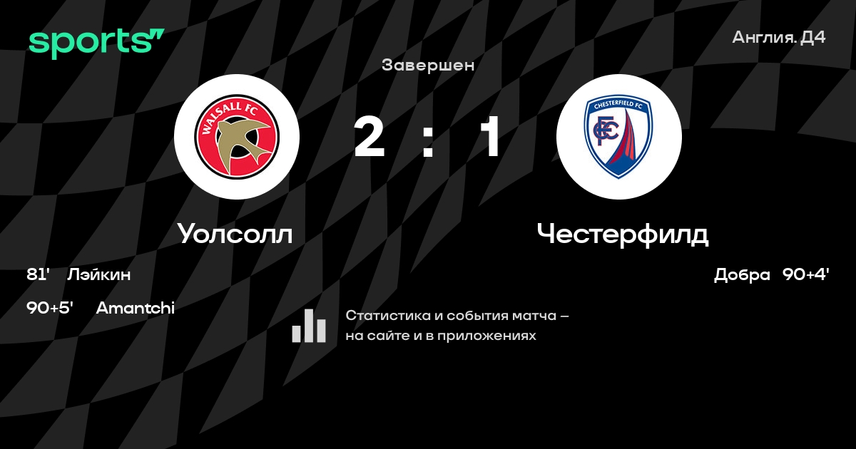 Уолсолл – Честерфилд: Уолсолл не проигрывает в 7 из 9 последних матчей против этого соперника