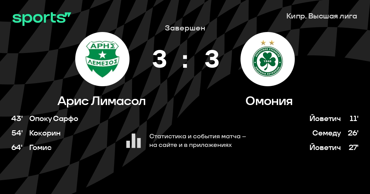 Арис Лимасол – Омония: Омония не проигрывает в 6 из 8 последних матчей против этого соперника