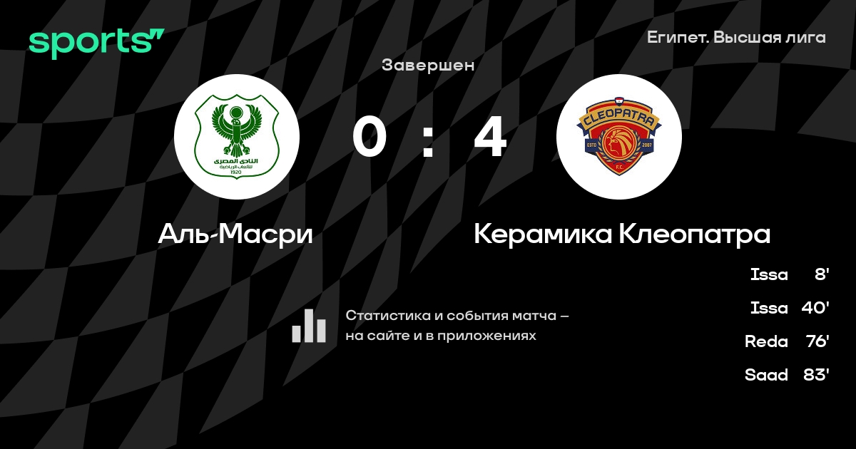 Аль-Масри – Серамика Клеопатра: Серамика Клеопатра забивает в 9 последних матчах против этого соперника
