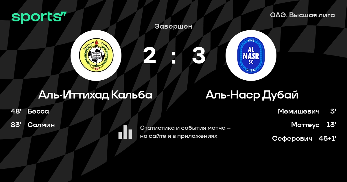 Аль-Иттихад Кальба – Аль-Наср Дубай: Аль-Наср Дубай не проигрывает в 6 из 8 последних матчей против этого соперника
