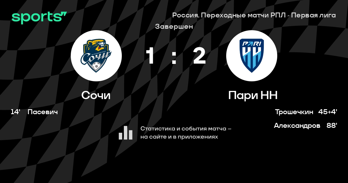 Сочи – Пари НН: Пари НН забивает в 5 последних матчах против этого соперника
