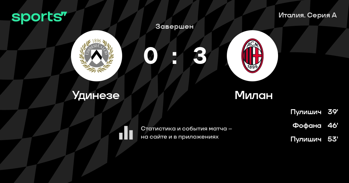 Серия А: шансы «Удинезе» и «Милана» на победу в матче 4 тура