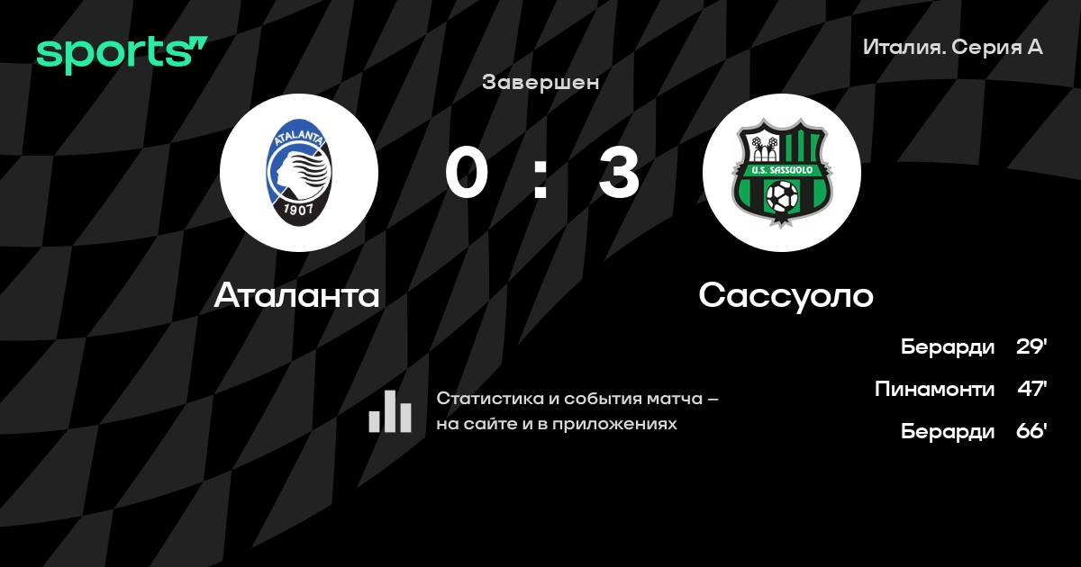 Аталанта – Сассуоло: Аталанта побеждает в 3 последних очных матчах
