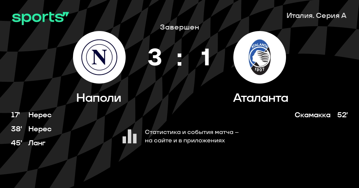 Серия А: шансы «Наполи» и «Аталанты» на победу в матче 12-го тура чемпионата Италии