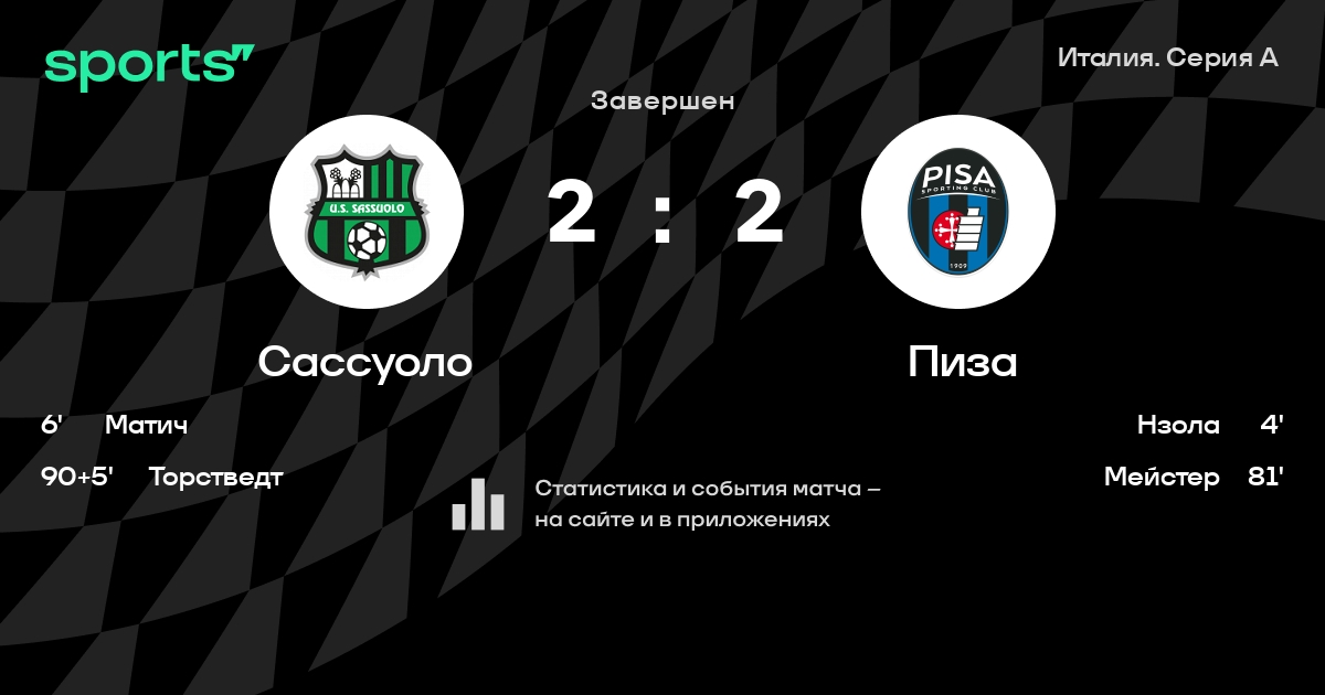 Серия А: шансы Сассуоло – Пизы победу в матче 12-го тура чемпионата Италии