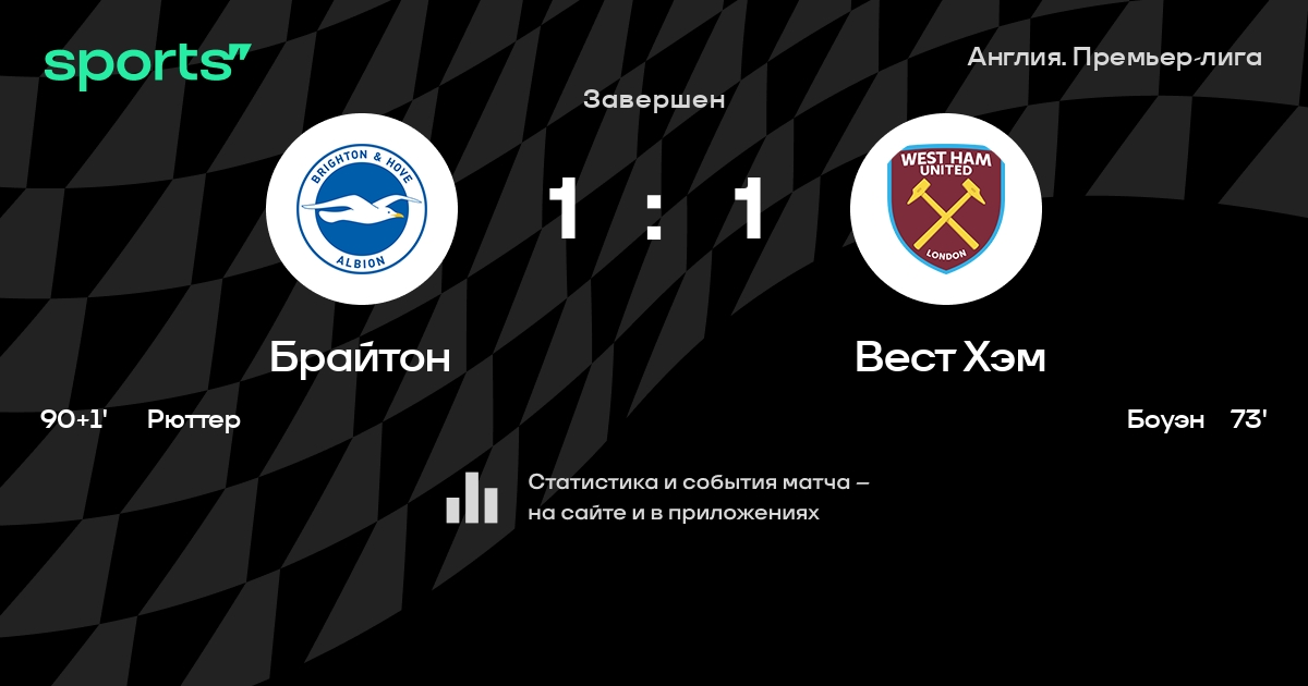 АПЛ: шансы Брайтона и Вест Хэма на победу в матче 15 тура