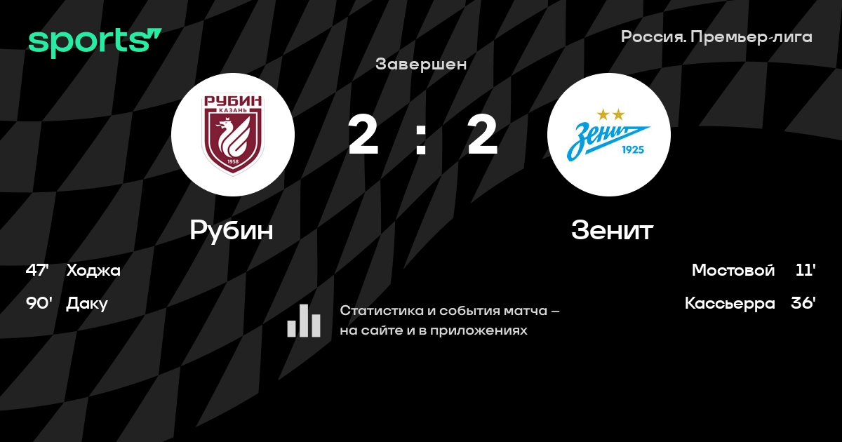 РПЛ: шансы «Рубина» и «Зенита» на победу в матче 2 тура