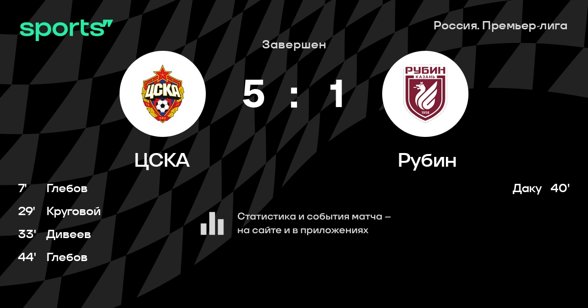 ЦСКА – Рубин: коэффициенты