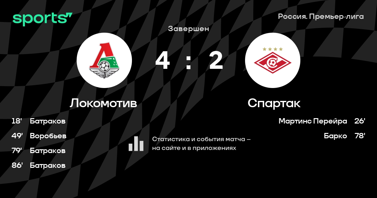 Локомотив – Спартак: Спартак забивает в 8 последних матчах против этого соперника