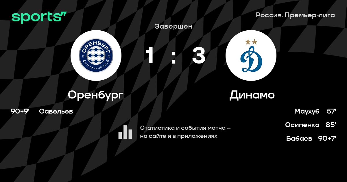Оренбург – Динамо: Динамо забивает в 6 последних матчах против этого соперника