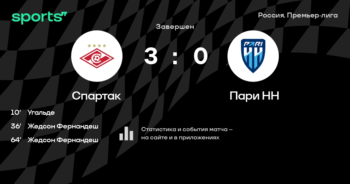 Спартак – Пари НН: Спартак не пропускает в 6 последних матчах против этого соперника