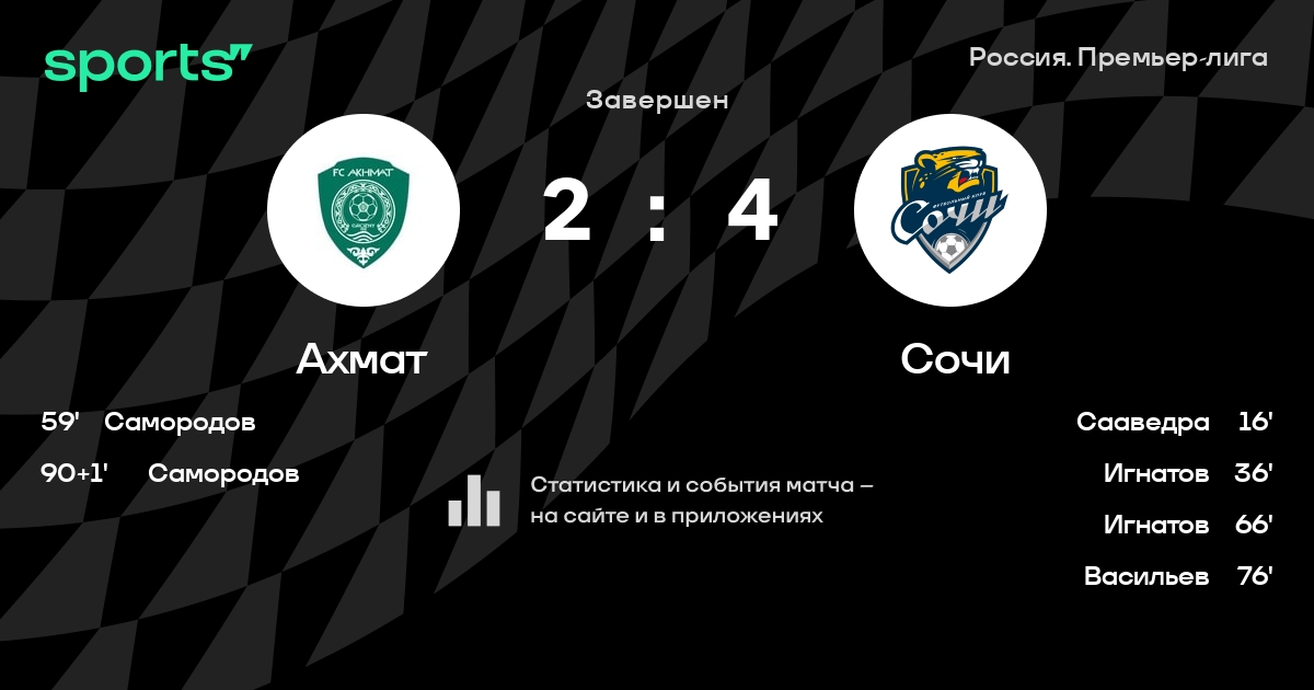 Ахмат – Сочи: Ахмат побеждает в 3 последних очных матчах в турнире «Премьер-лига Россия (РПЛ)»