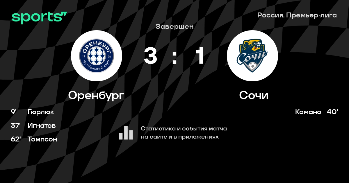 Оренбург – Сочи: Оренбург забивает в 15 последних матчах против этого соперника