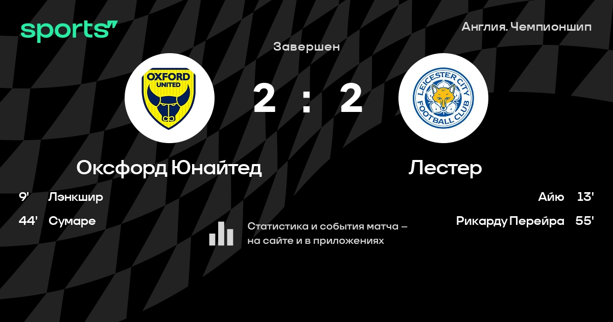 Оксфорд Юнайтед – Лестер: коэффициенты