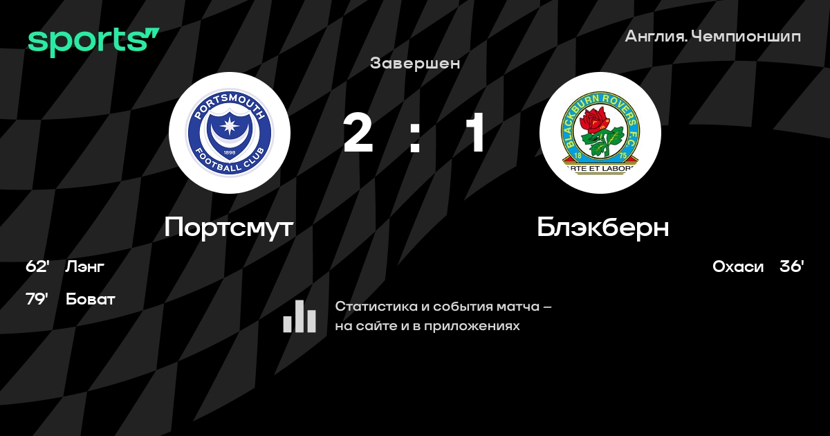Чемпионшип: шансы Портсмута и Блэкберна на победу в матче 21 тура