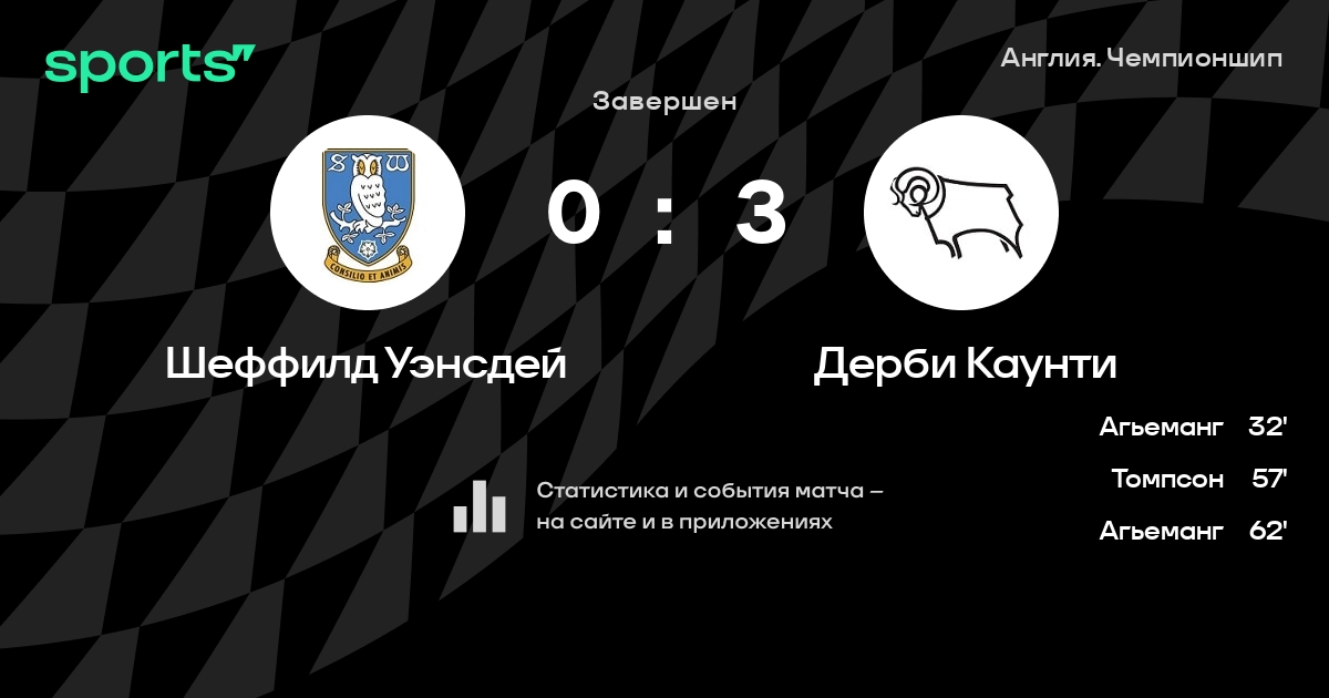 | 12 | Дерби Каунти | 21 | 8 | 6 | 7 | 30 | 29 | +1 | 30 | ||