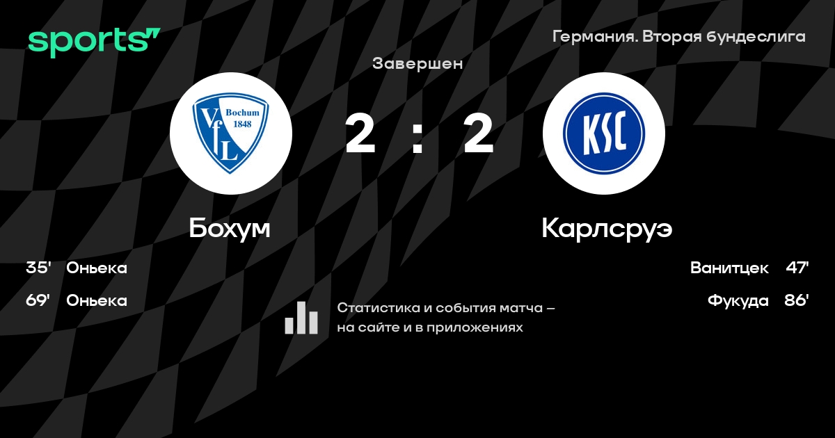 Бохум – Карлсруэ: Бохум не проигрывает в 6 из 8 последних матчей против этого соперника в турнире «Вторая Бундеслига»
