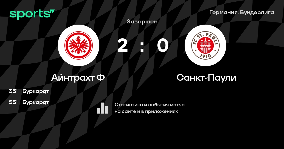 Айнтрахт Ф – Санкт-Паули: Айнтрахт Ф забивает в 3 последних матчах против этого соперника